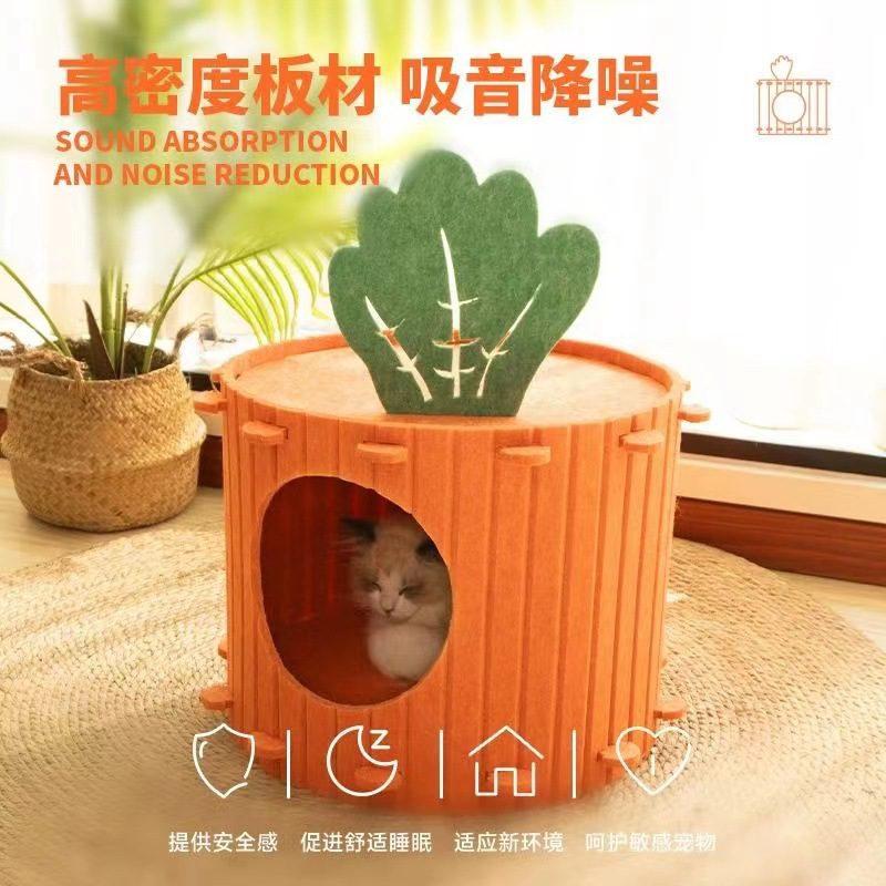 胡萝卜宠物猫窝 双层钻洞半封闭式宠物窝 毛毡猫窝 四季通用